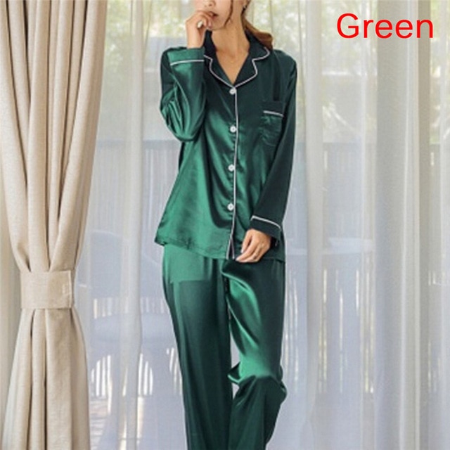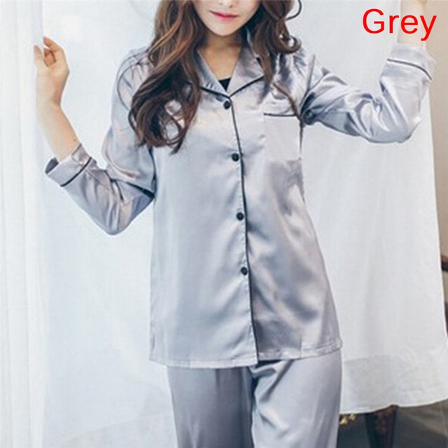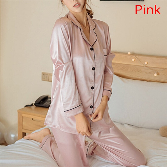 2 Piece Set Loungewear Womens Silk Satin Pajamas Pyjamas Set Long Sleeve Sleepwear Pijama Pajamas Suit Female Sleep