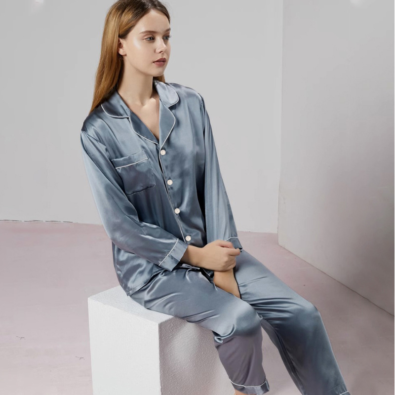 Spring simple solid color lapel cardigan pajamas are comfortable and can be worn outside