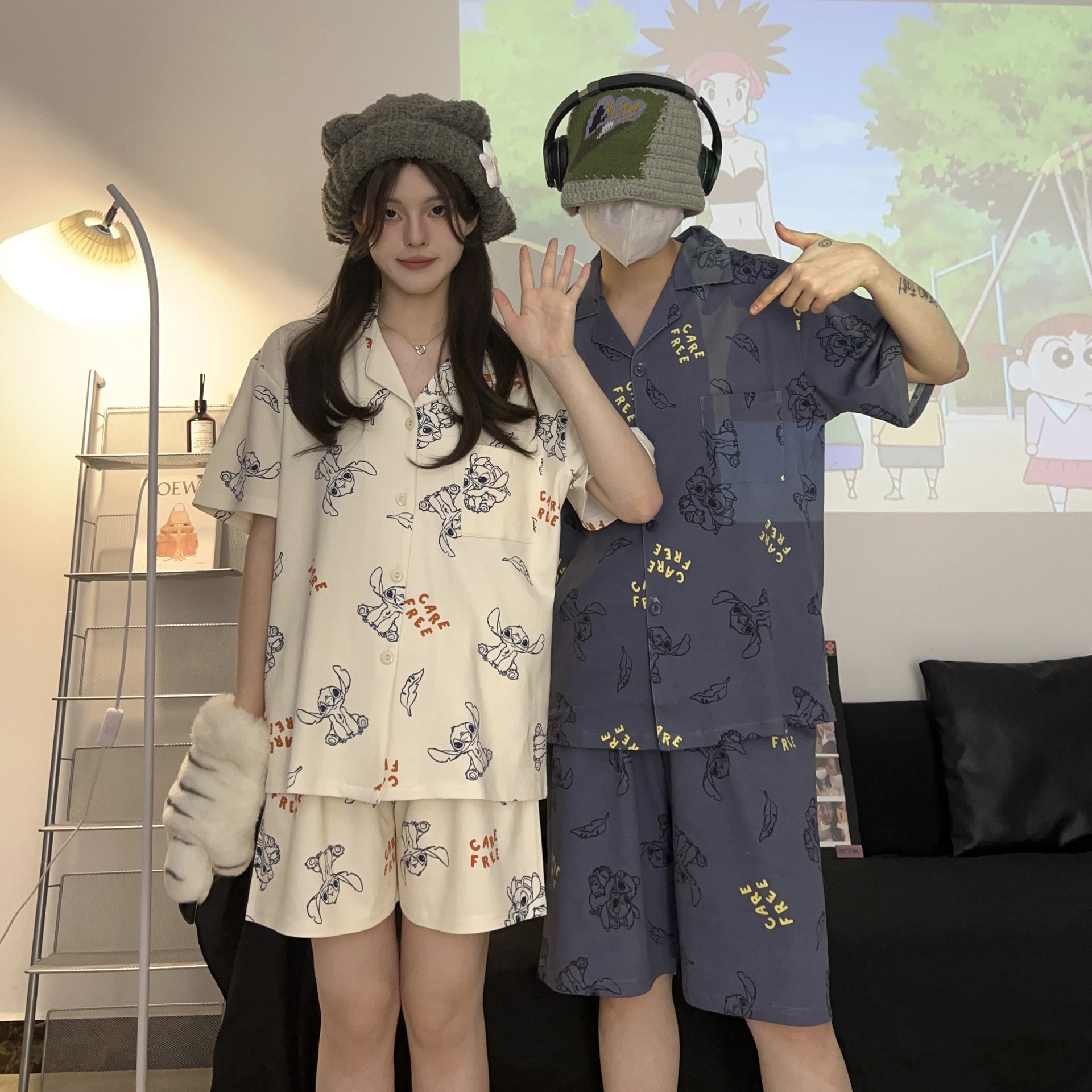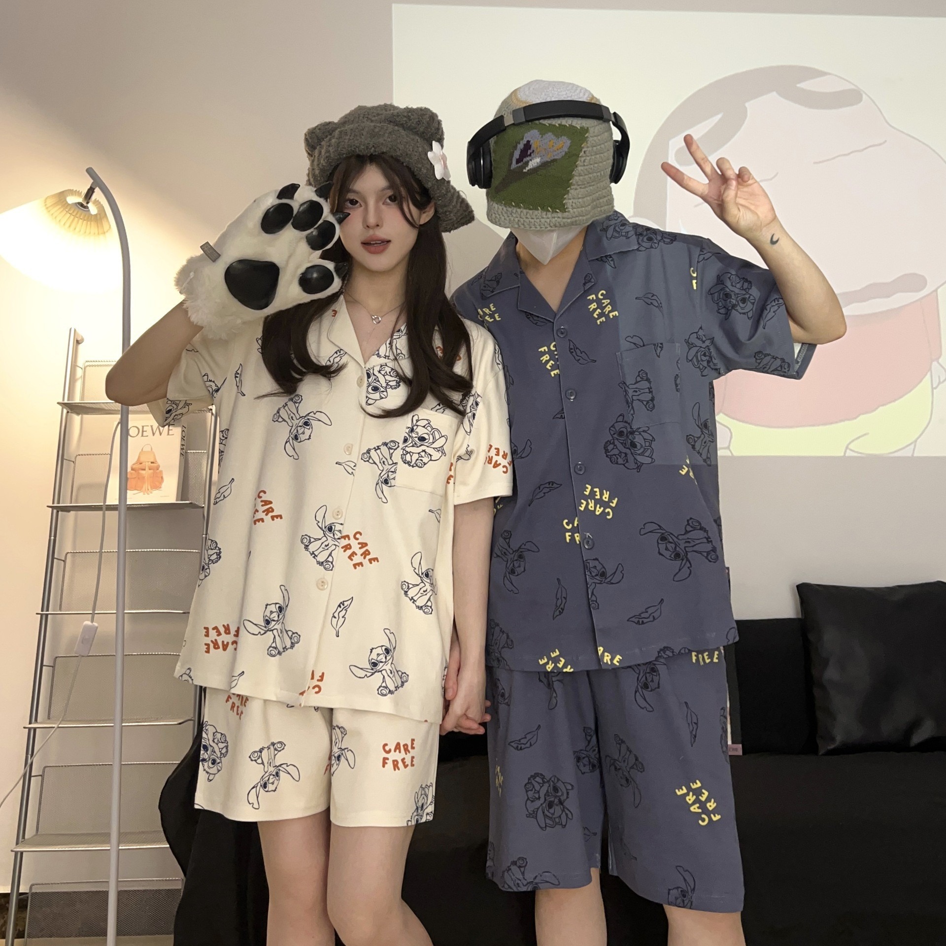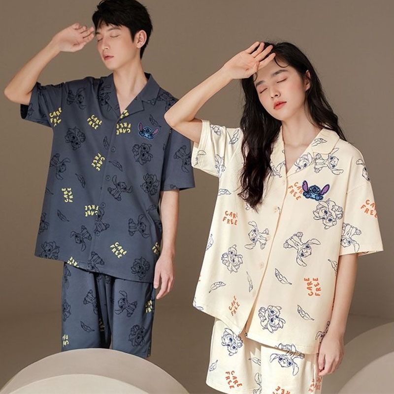 Summer couple pajamas short sleeved shorts men’s and women’s cardigan suit