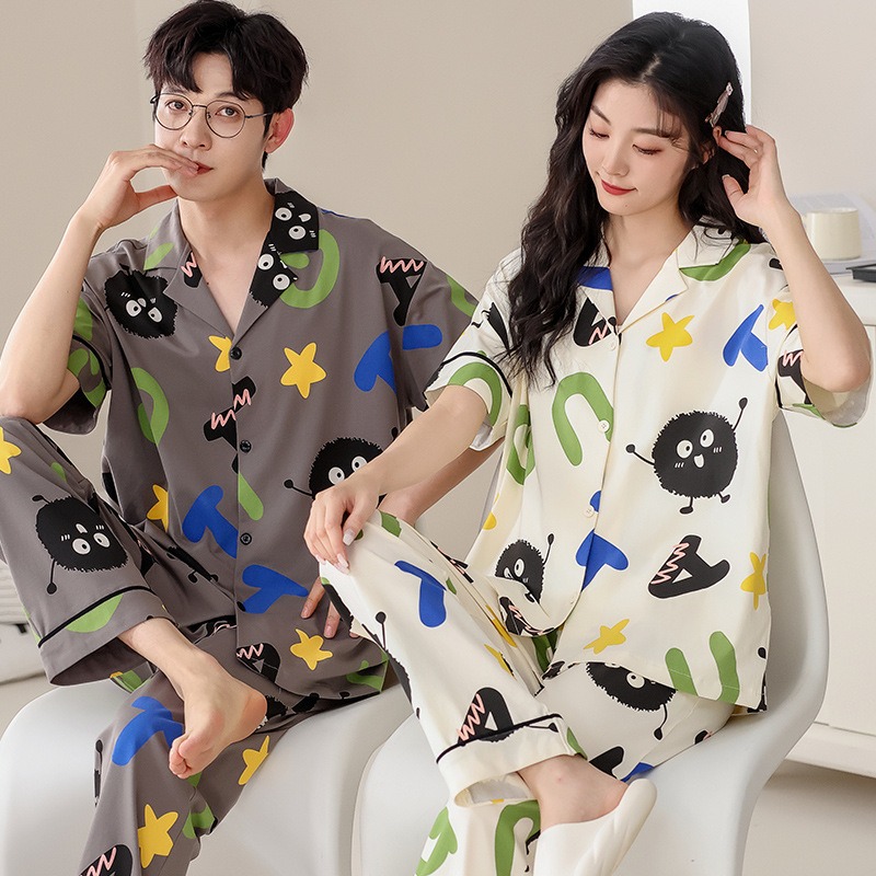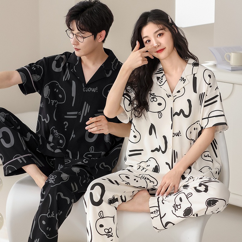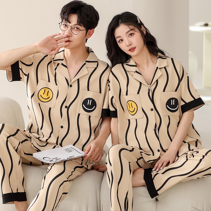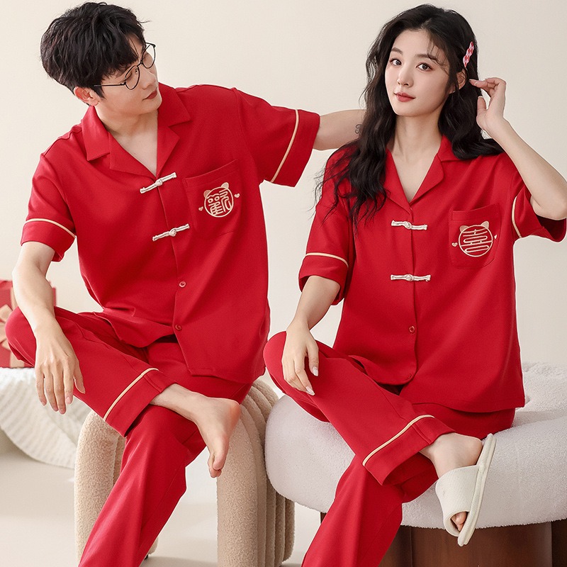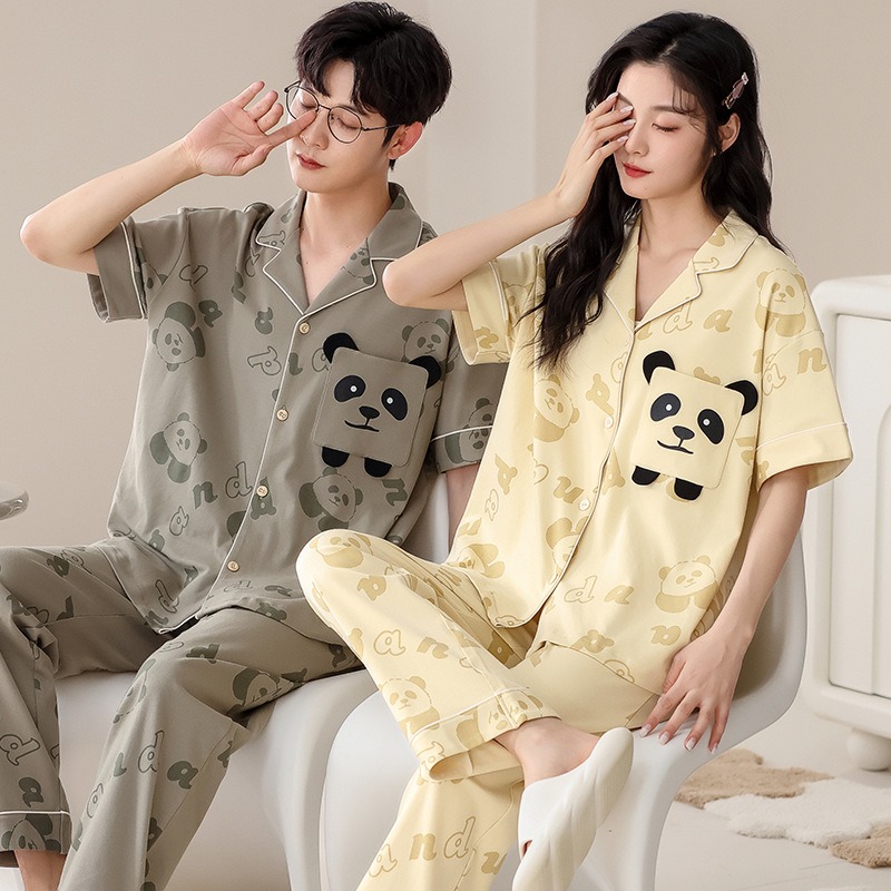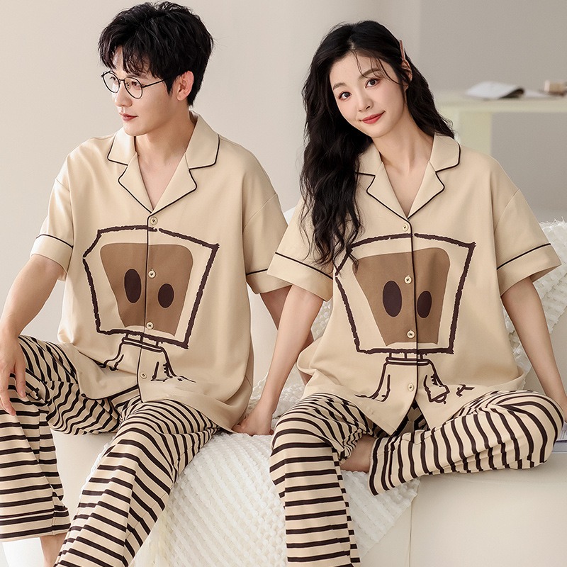 Summer short sleeved couple pajamas pure cotton women’s home clothing casual and wearable set